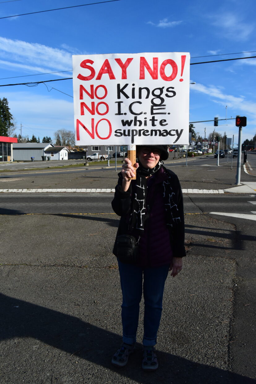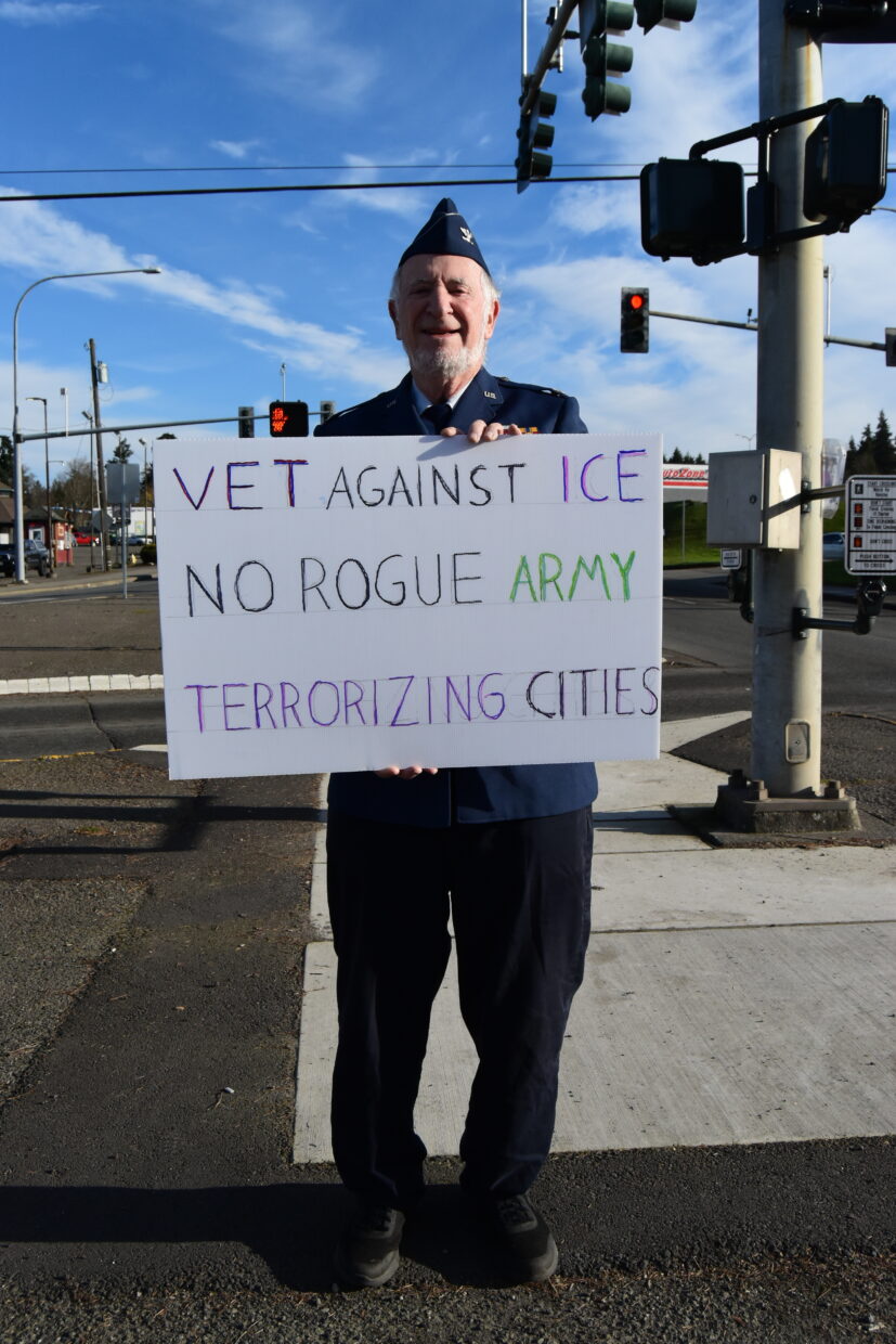 “I’m angry,” Bill Buchan replied when asked why he was protesting against the current Trump administration and the Immigration and Customs Enforcement on Tuesday January 20. “I don’t want ICE to intimidate workers and innocent people with no criminal backgrounds. I want to do something about it. So I’m trying to help in the best way I can.” Buchan, an 88 year old retired US Air Force Colonel and Vietnam War Veteran from Sequim, WA, wore his military uniform as he staged his peaceful protest at the junction between Front and First Streets in Port Angeles, WA on Tuesday. He said he has worn his uniform before while participating in the No Kings protests against political doctrines of the current president. “I’m infuriated by the lack of emotional and social intelligence shown by the current administration,” Amy Heath of Port Angeles explained as she joined Bill Buchan and millions of Americans around the country in walking out of their workplaces, offices, and homes at around 2 PM on Jan. 20, 2026 – exactly one year since Donald Trump was inaugurated for his second term as US President. She was also demonstrating against the recent actions of ICE that resulted in the death of Renee Good 13 days prior. Heath said that she had relatives in Minnesota, where the killing took place, and that there was increasing ICE presence around where they lived – a presence that would lead to the killing of Alex Pretti by ICE agents on January 24th.